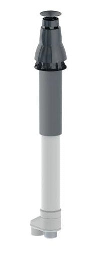 Dit specifieke model combineert een duurzame kunststof (PP) rookgasbuis met een gecoate stalen luchttoevoerbuis, ontworpen voor een parallel 100/100 mm systeem. Het zwarte (RAL 9005) bovendakse deel zorgt voor een strakke, moderne uitstraling, terwijl het onderdakse deel in wit (RAL 9016) is uitgevoerd.
